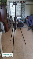 Мощный высокий штатив для фото и видеотехники. Аллюминиевые стойки. Состояние нового. Чехол.