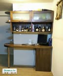 Красивый рабочий уголок и стол под компьютер + навесные полки. В хорошем состоянии, сделано в частной мастерской. Длина стены 1.5м, глубина стола 38 см, глубина полок 27.5 см, высота полки - 38.5 см. Цена не включает спиртное -).