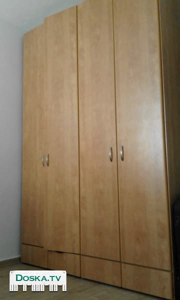 Холон Продается гардеробный шкаф, 4 двери. Размер: высота 240, ширина 155, глубина 55. Одна сторона содержит 2 полки + место для плечиков+ зеркало в двери, в другой еще 6 полок. выдвижные ящики внизу каждой стороны. В отличном состоянии. Цена 300 шек